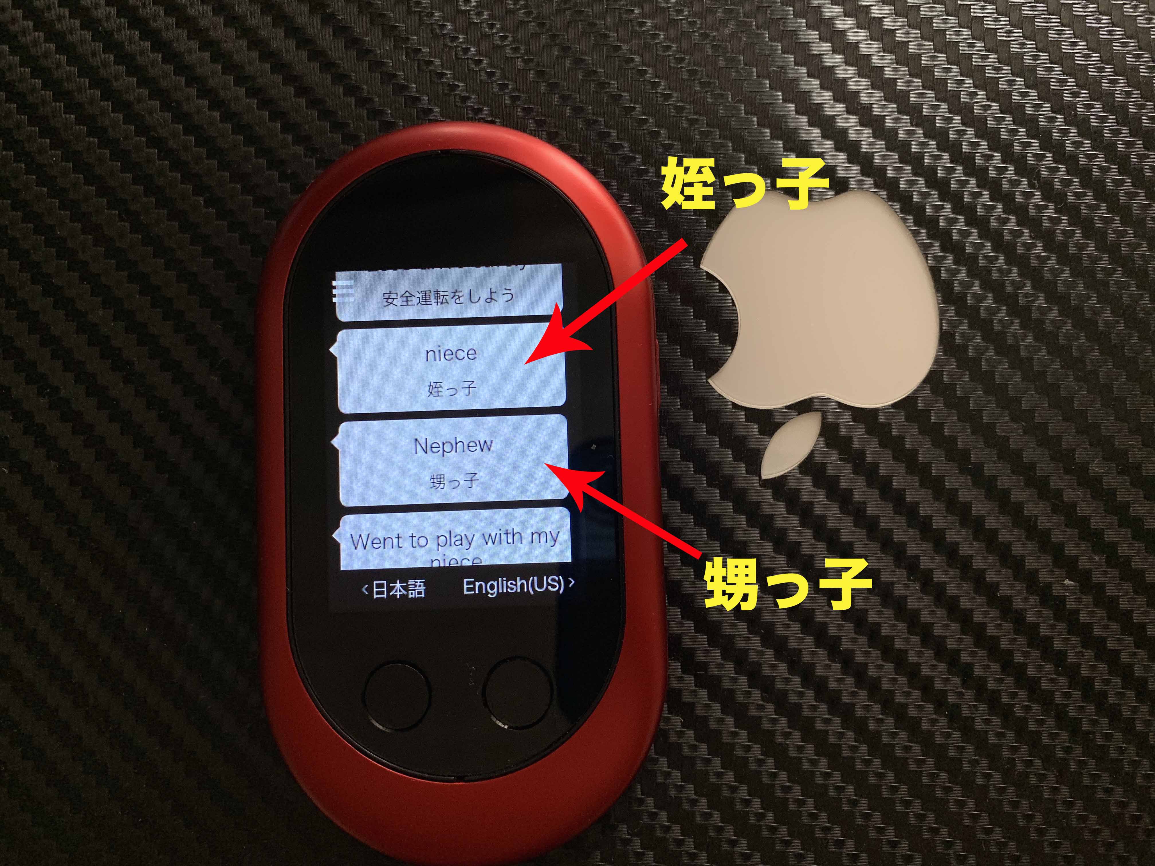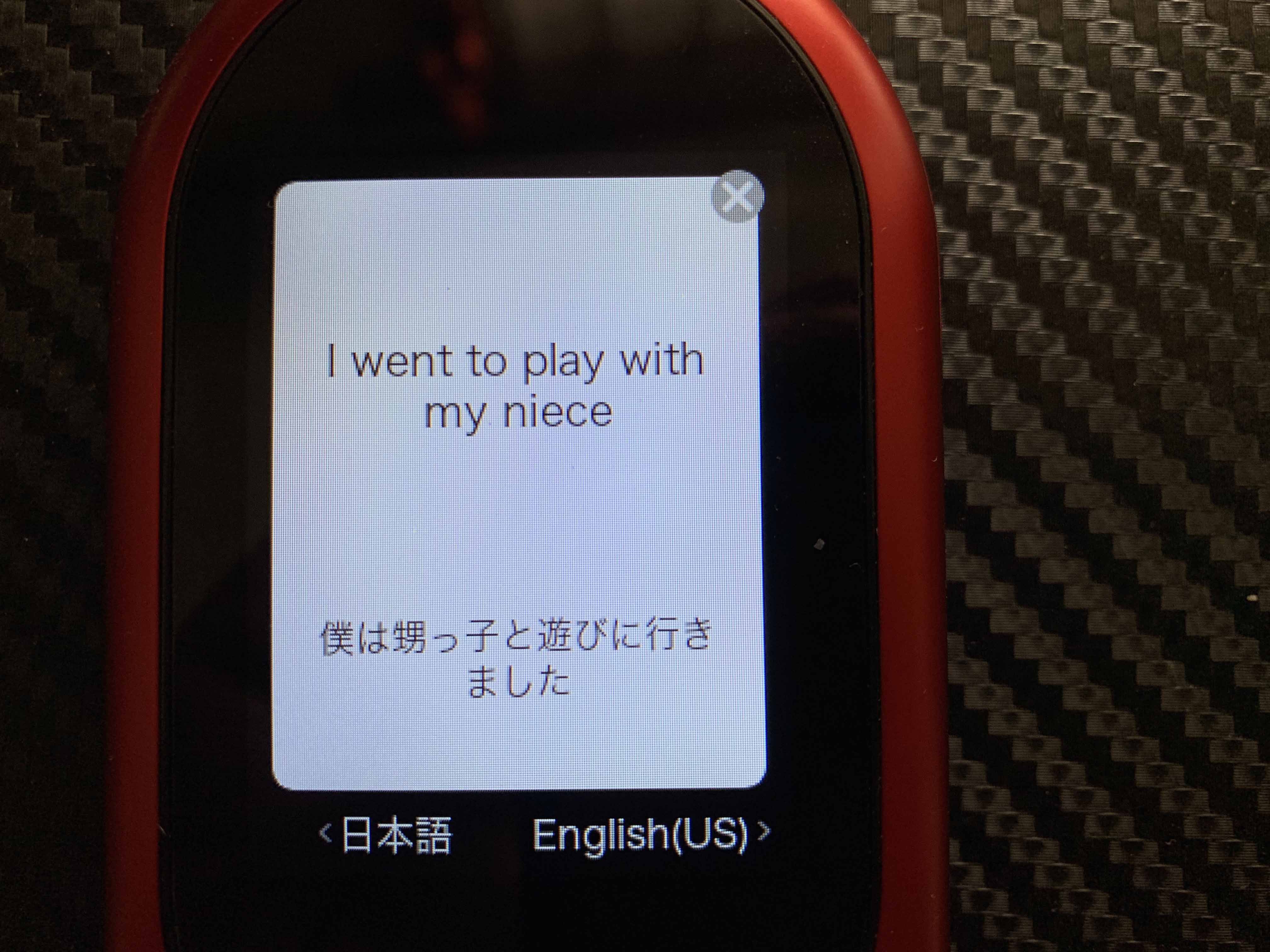 何回ポケトークに向かって日本語で「僕は甥っ子と遊びに行きました」と話してもポケトークは「niece!」としゃべります。